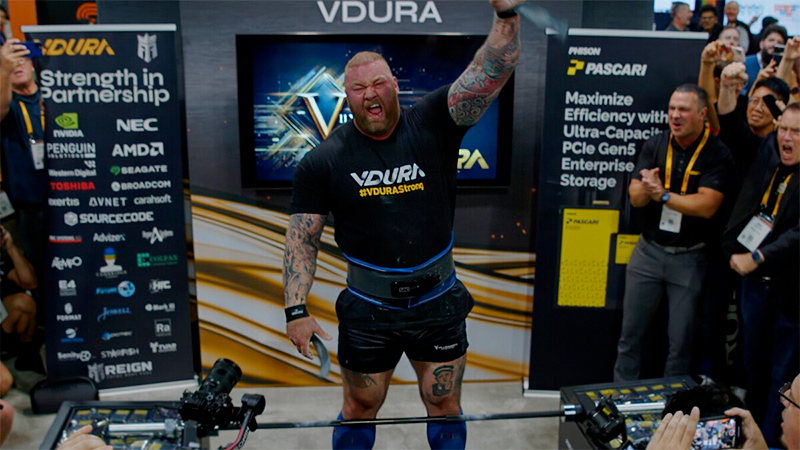 Актер и тяжелоатлет Хафтор Бьёрнссон, известный по роли Горы в "Игре престолов", поднял эту штангу, осуществив таким образом одновременное перемещение 282 петабайт. Это мировой рекорд по перемещению данных, однозначно!