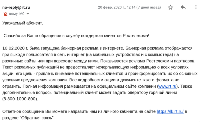 В ответ на претензии в "Ростелекоме" отвечают следующее:
