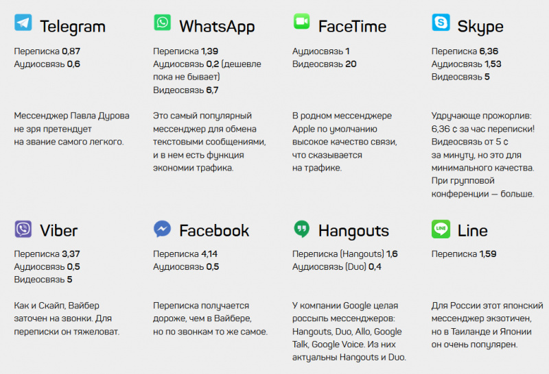 Посмотрим, сколько евроцентов (¢) будет стоить переписка с фото и минута видеозвонка в разных мессенджерах.