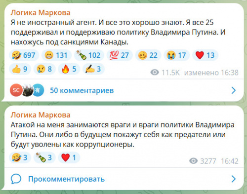 Марков им гневно отвечал, что он 26 лет вылизывает Путину зад, что он верный путинец, и что те, кто предъявляют ему претензии, сами враги России и Путина.