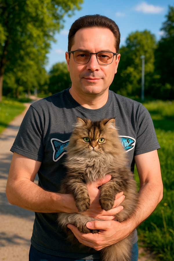 То же самое попросил сделать ChatGPT, причем заново загрузил свою фотографию. Он поменял, но все равно меня сделал с кошкой на руках. И физиономию тоже исказил - в статье были правы.