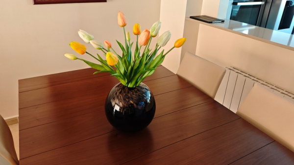 Вот изображение, на котором ваза с цветами убрана со стола: