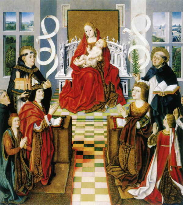 «Дева Мария Католических королей»: на ней изображены король с королевой (справа) в сопровождении одной из инфант и принца дона Хуана, преклонивших колени перед Девой Марией и Младенцем, в присутствии святого Фомы, святого Доминика и двух других персонажей, которые были идентифицированы как инквизиторы фрай Томас де Торквемада и Педро де Арбуэс.