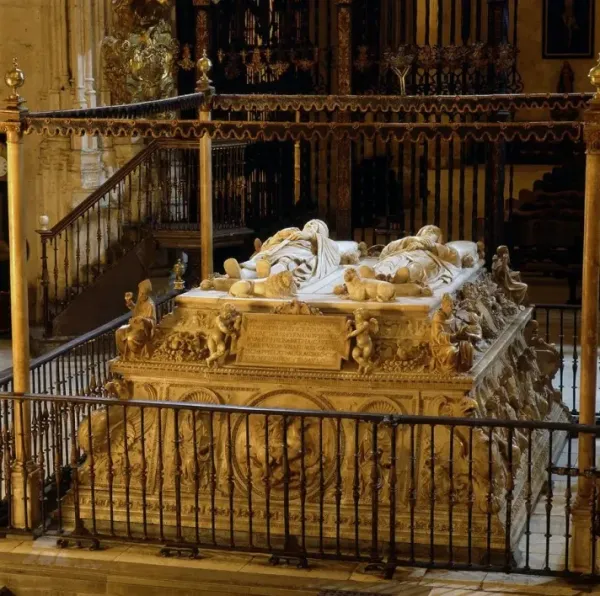 А вот изваяние, о котором говорил Рубио, работы Доменико Фончелли: король и королева - Фердинанд II Арагонский и Исабель I Кастильская. Останки королевской семьи захоронены в крипте под этим изваянием.
