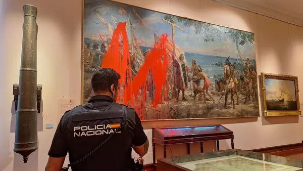 Как выяснилось, вчера же две экотеррористски из Futuro Vegetal облили биоразлагаемой краской картину "Первое поклонение Христофору Колумбу" в Военно-морском музее.