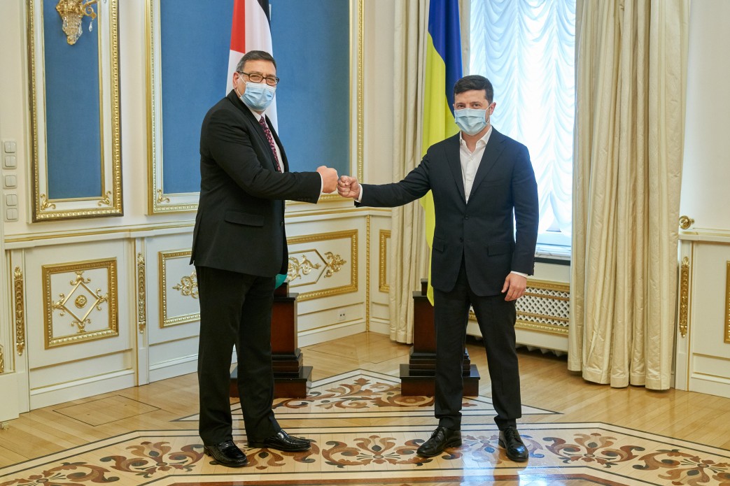 На фото - новоназначенный на тот момент Посол Палестины в Украине Гашем Хасан Даджани на церемонии вручения верительной грамоты Президенту Украины Владимиру Зеленскому в 2020 г.