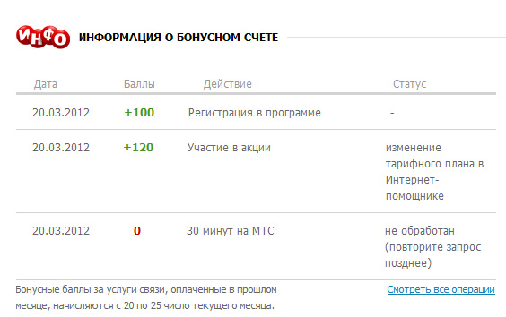 Кстати, бонусные баллы - неплохая штука. Я на них сам подключился - и когда нужно добавляю бесплатно минуты, трафик и еще че-нить. Бесплатно. Баллы растут после каждого пополнения баланса.