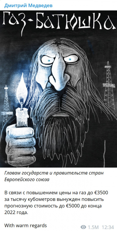 ..и второе - любой человек пугает тем, что сам боится. Неужели Димон настолько нищеброд, что трёхкратное (пяти-, семи- да пофиг) подорожание газа и отопления для него прямо таки ужас ужастный?
