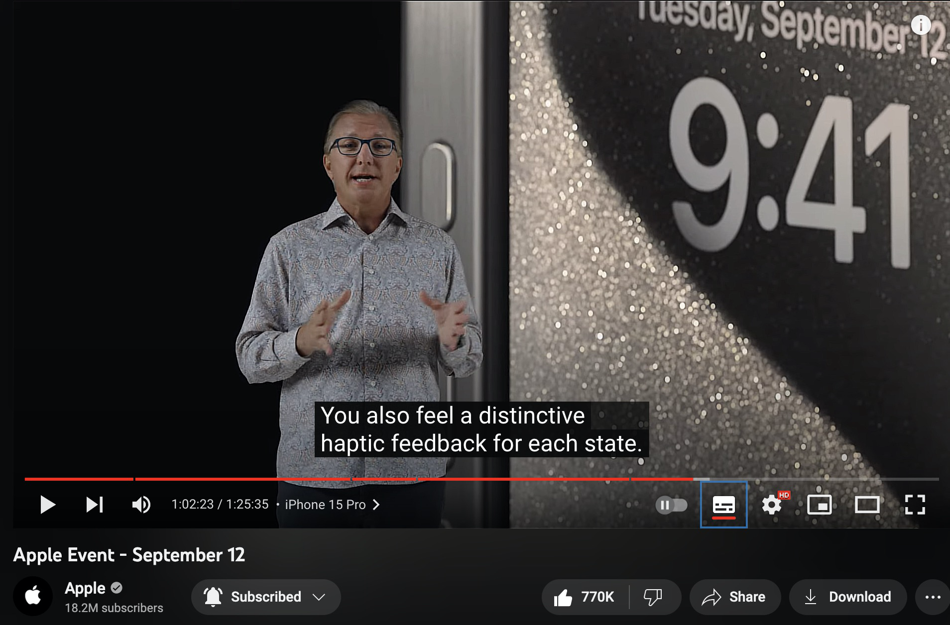 В описании презентации на Ютубе дается разбивка по главам, сразу перейди на iPhone 15 Pro и смотри.