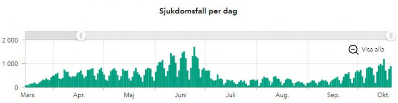 Угроза более серьёзного роста всех показателей пандемии остаётся очень реальной, но слухи о завершении "радикального эксперимента" (которой в самой Швеции никто экспериментом, тем более радикальным, не считает) не соответствуют действительности, т.к. никаких серьёзных изменений политики не намечается, локдауны и карантины не планируются. По-прежнему действует введённый в марте запрет на массовые мероприятия с участием более 50 человек, а также ограничения для ресторанов и кафе, плюс множество рекомендаций по социальному дистанцированию. По-прежнему, всем, у кого есть такая возможность, рекомендовано работать из дома. Но с 1 октября отменили запрет на посещение домов престарелых. Школы детские сады, университеты, магазины, спортивные клубы, бассейны детские кружки и курсы продолжают работать в обычном режиме, хотя и с некоторыми ограничениями. Кинотеатры работают, но не более 50 человек в зале, рассадка через ряд и при покупке билетов по 2 места с каждой стороны автоматически блокируются, поэтому не "Тенете" в IMAX периодически аншлаги. Маски почти никто не носит, и они не входят в рекомендации Агентства Здравоохранения. Введено новое правило: обязательный недельный домашний карантин для взрослых членов семьи заболевших ковидом. Правительство приняло так же закон, позволяющий местным властям вводить дополнительные ограничения - например, на загруженность общественного транспорта, работу ресторанов и т.д. Возможно, в ближайшее врем этот закон будет применён в лэне Уппсала, где сейчас сильный рост. Вообще, по ощущениям многие расслабились, особенно молодёжь, и серьёзным источником распространения инфекции стали студенческие вечеринки. Очень надеюсь, что свежая статистика приведёт народ в чувство.