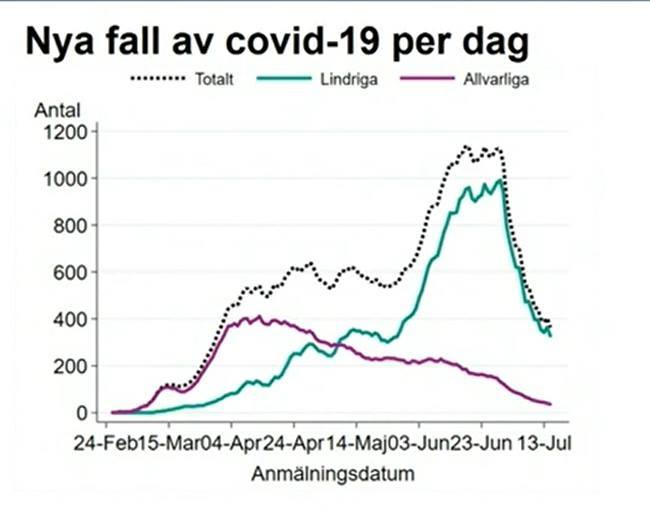 Смертность тоже снижается - большинство дней июля менее 10 в день (на пике в середине апреля доходило до 115 в день), но данные за последние 3-4 недели постоянно дополняются. Избыточная смертность (по отношению к среднестатистическим показателям) сошла на нет. Общая смертность - 5,619 человек, или 544 на млн, это один из самых высоких показателей в мире - тут, конечно, гордиться нечем. По смертности на душу населения Швецию обогнали только Бельгия, UK, Испания, Италия, а также 11 американский штатов. Большинство этих территорий вводили жёсткие локдауны. Модель лондонского Imperial College, которой руководствовались американские и британские политики, предсказывала Швеции 96 тыс смертей к июлю, если не будет введён жёсткий карантин. Т.е. когда Трамп говорит, что "спас миллионы жизней", то речь идёт именно об этой модели, которая на примере Швеции ошиблась в 17,5 раз.