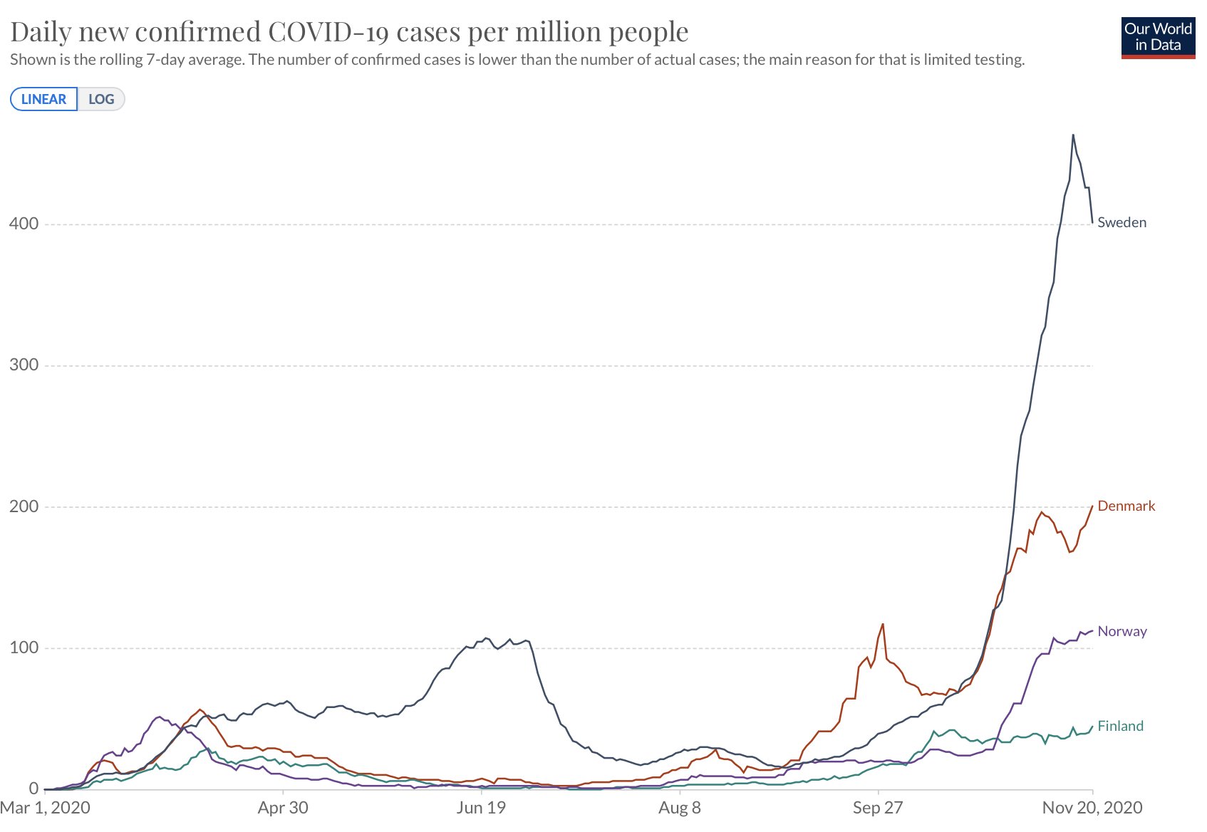 Не проходит и дня, чтобы мне не прислали ссылку на какую-нибудь очередную статейку то ли в новостях на Мейл.ру, то ли в Газете.ру, в которой торжествующе утверждалось, что, мол, все, Швеция сдалась, прекратила бесчеловечные эксперименты, в результате чего ввела полный локдаун, заперла всех по домам и заставила всех носить намордники.