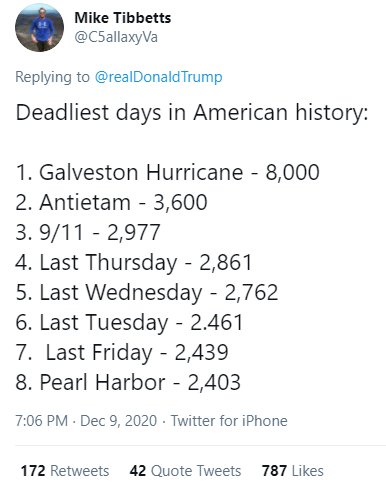 Уже в мае мы знали, что цифра смертей от вируса в Нью-Йорке завышена в три раза. Цифры из скриншота наверняка завышены в той же манере -- пик осеннего сезона был пройден в середине ноября, тогда было что-то около 1300 в день.