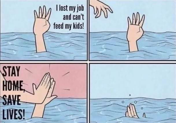 А то, что кто-то там заболел и три дня температура, а потом две нежели слабость, ну, извините, для меня это вообще не понятно. Если бы никто никогда раньше не болел, ну ладно. Но тут, из-за трех дней температуры и последующей слабости закрывать магазины и границы, кинотеатры и гостиницы (а это все рабочие места, дело не в том, что прожить нельзя без того, чтоб не полететь на самолете в кинотеатр)?