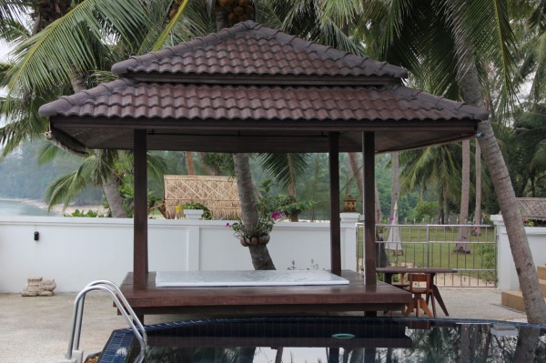Имхо в беседке у бассейна не хватает седого дедушки-сенсея в позе лотоса. Для полного феншуя.