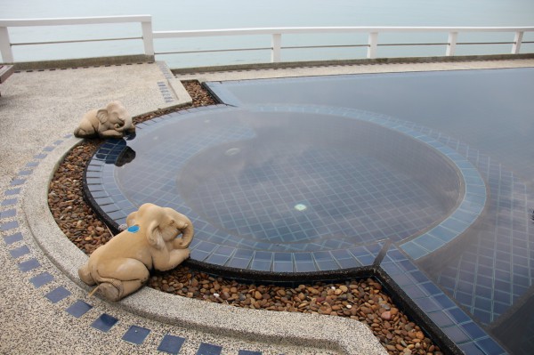 А это встроенная в бассейн джакузи, вокруг которой стоят вот такие прикольные слоники.