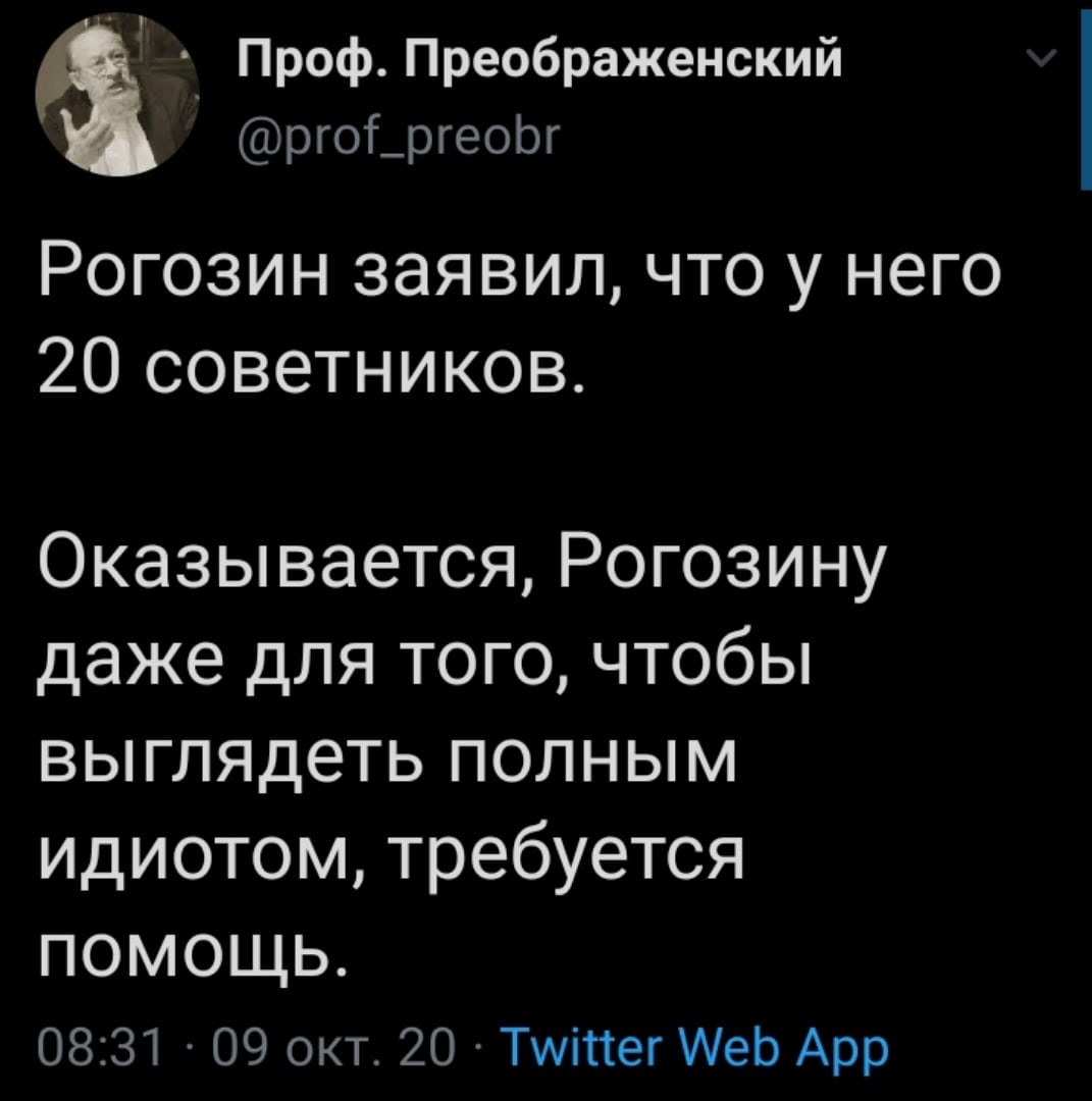все абсолютно убеждены, что Дмитрий Рогозин вчера сильно бухал