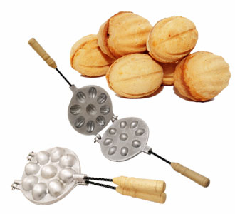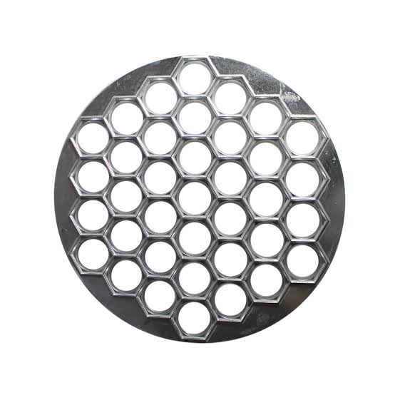 Эта - никак. А та, что ребристый круг с отверстиями - да. Два блина легче раскатать, чем сорок отдельных комочков теста.