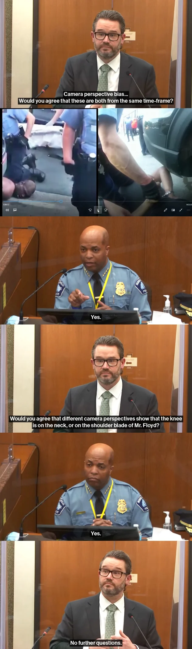 Вот не увидел, ни на 19-21, ни на 20-06, что нога лежит не на верхней части лопатки, а прям на шее. Да и да, чтобы осудить человека в предумышленном убийстве надо бы для начала доказать умысел, а еще б не мешало бы доказать, что откинулся Флойд не из-за принятых препаратов (с учетом I can't breethe в машине). Ну и что совсем не следовало делать, так это давать хотя бы доллар его родственникам.