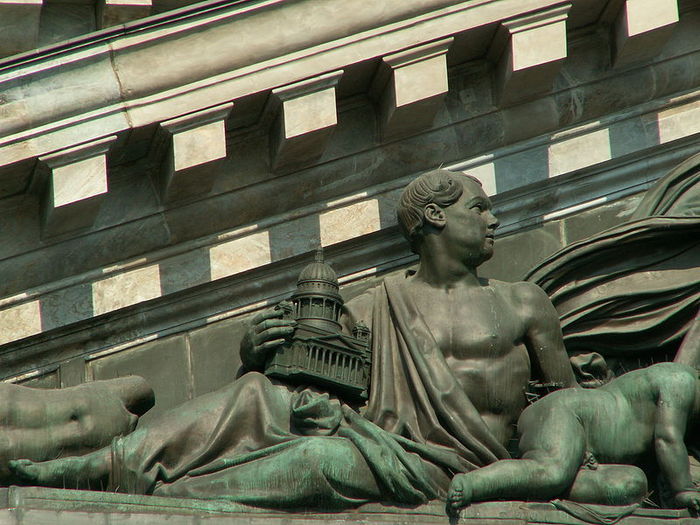 Кстати, на западном фасаде Исаакия есть скульптура Монферрана с моделью собора в руке.