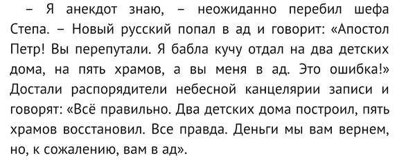 Обожаю воцерковленных миллионеров. Сколько в них благости, сколько истинного смирения, а главное - совершенно нет никакой гордыни!