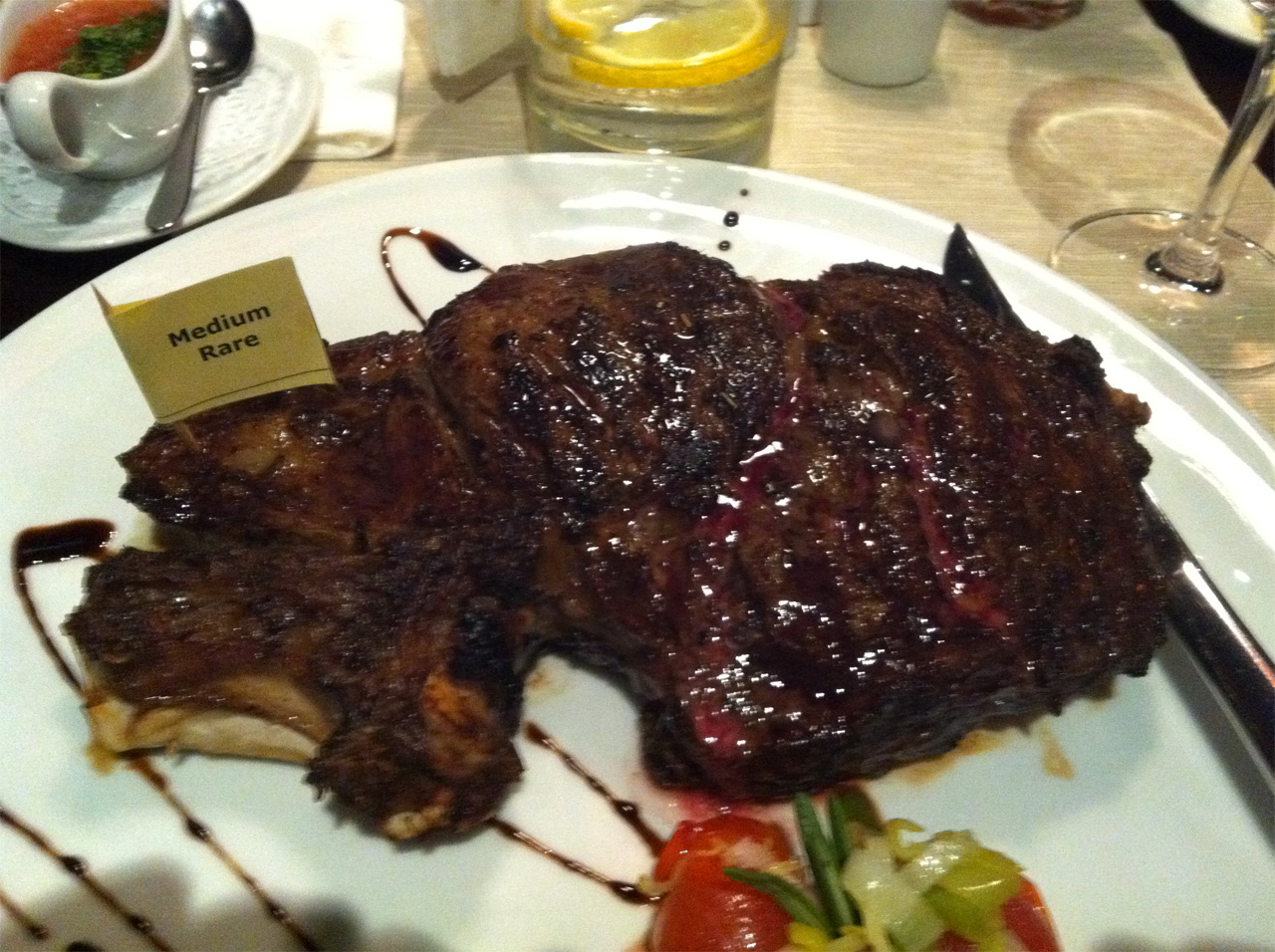 Давно хотел попасть в это заведение (благо живу рядом), но покупять кусок мяса за 1500 рублей считаю для себя не приемлимым. И тут удача - купил купон на 50% скидку в этом ресторане. Заказали два самых дорогих - скидка же (названий не помню, но один точно из аргентинской говядины).Стейк весом в пол кило конечно впечатляет! Но... Я дома для себя обычную говядину приготовляю лучше, а овощи на гриле вообще разочаровали (микроскопическая порция и овощи почти сырые). И вот теперь мне интересно - это для посетителей по акции так готовят или вкусовые качества стейков несколько преувеличены?