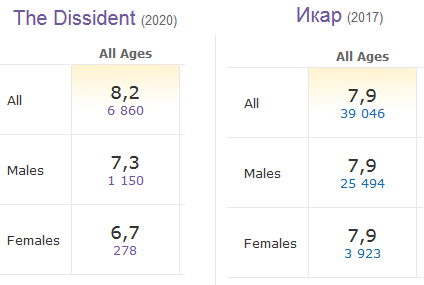 Хотя, если сравнивать с Ikarus, получившим Оскара и две пригоршни других побед и номинаций, у The Dissident "всего" три номинации. Другое дело, что это документалистика, пускай и остросюжетная - то есть типично фестивально-тематический показ.
