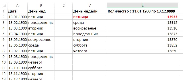Кстати, странный математическо-календарный факт - среди прочих дней недели вероятность того что 13-е число окажется пятницей наибольшая.