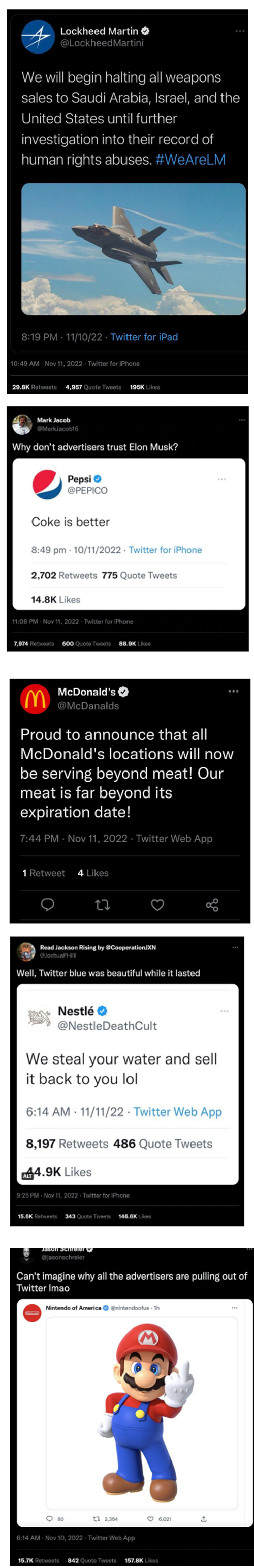 Твиттер куплен совсем недавно. От первого же "маркетингового" финта Маска(!) с продажей галочек денежно пострадали некоторые компании, кто-то из крупных рекламодателей (согласно заметке) уже вывели свои деньги. А Макс публично(!) ругает работу сотрудников и публично(!) ругается(!) с ними по техническим(!) вопросам.