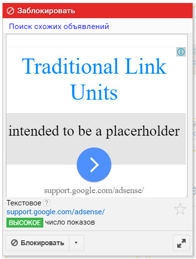 Ежедневно появляются сотни новых объявлений на новых аккаунтах. Блокировать по урлам смысла нет, домены тоже всегда новые (вероятно взломанные сайты), блокировать по аккаунтам adwords — тоже смысла нет, ежедневно создаётся куча новых.