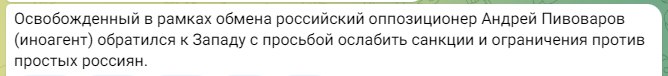 "Оппозиционер" Пивоваров попросил остановить санкции против "простых россиян" и упростить им въезд.