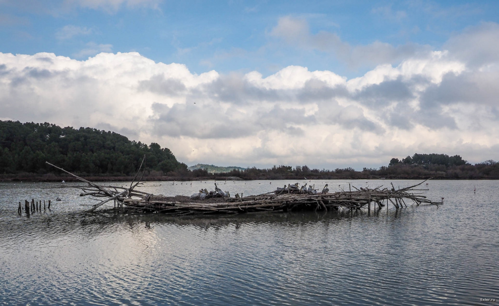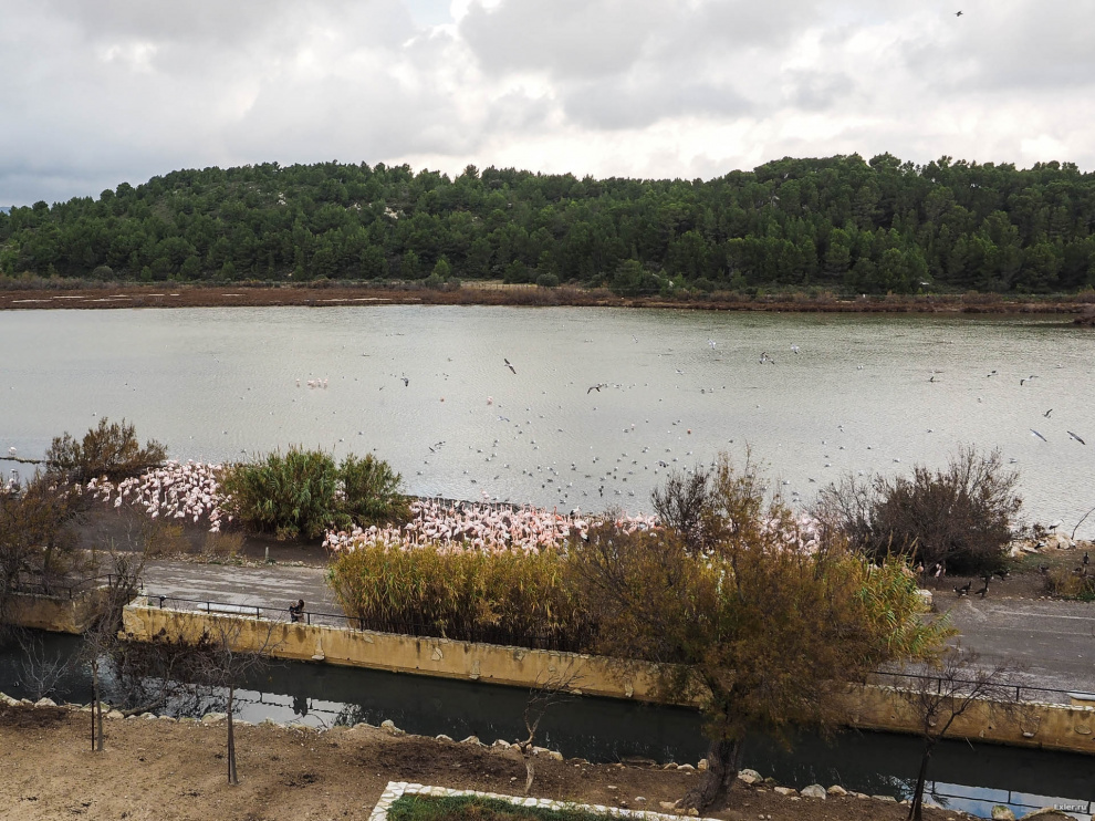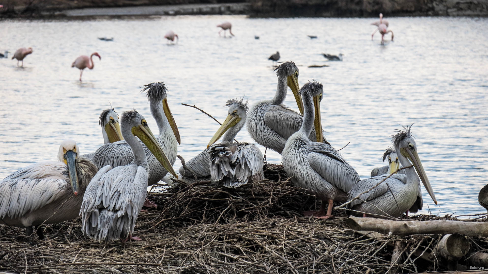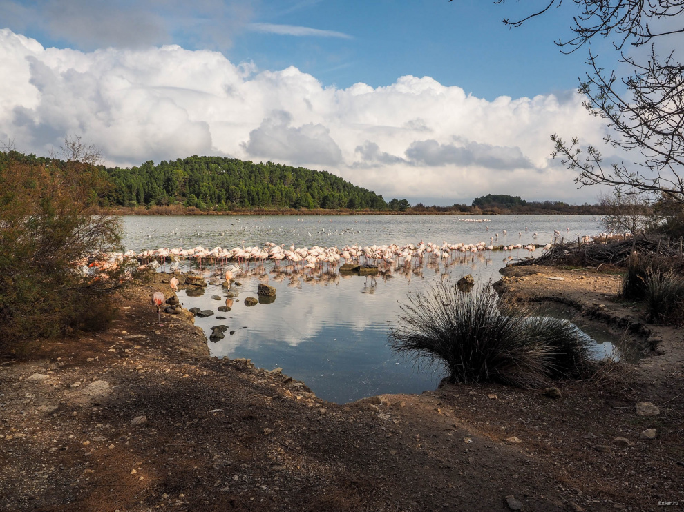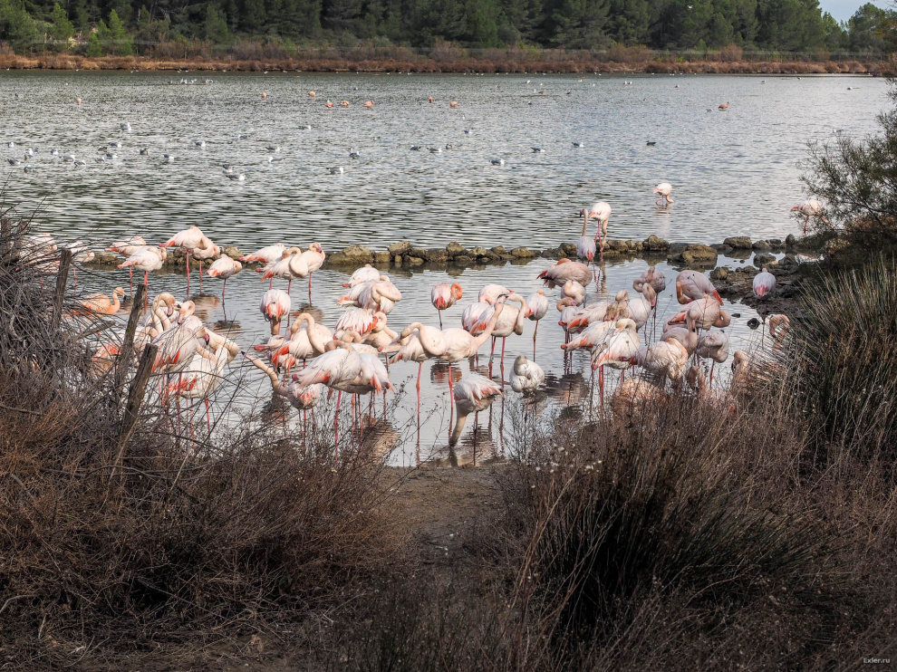 Большое озеро с розовыми фламинго и пеликанами. Туда можно спуститься и погулять вдоль берега.