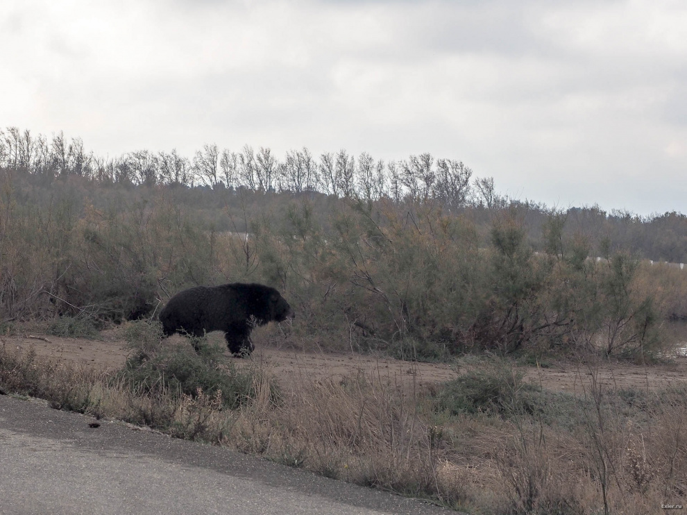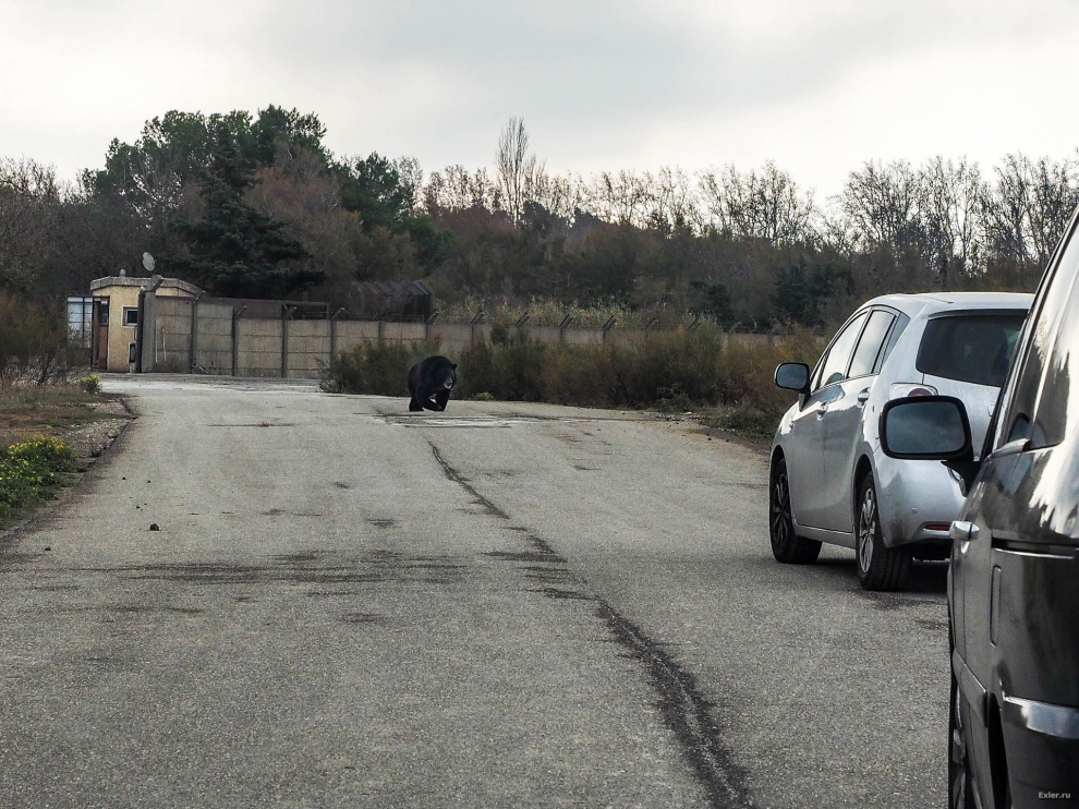 Один вышел прямо на дорогу. Рядом с ними останавливаться категорически нельзя, а то мишка может захотеть пообщаться.