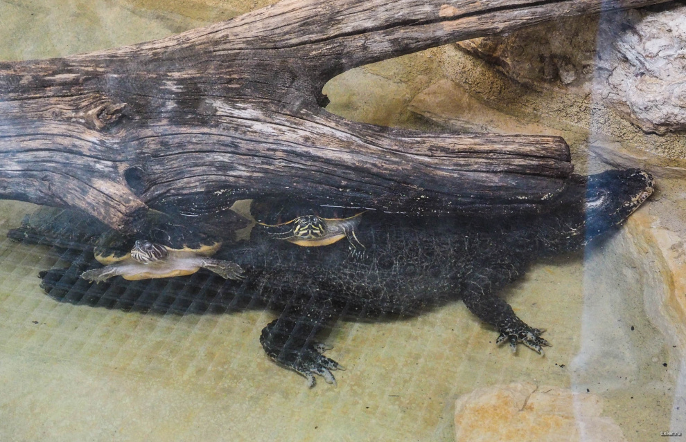 Как черепашки-то себя вольно чувствуют рядом с крокодилом.