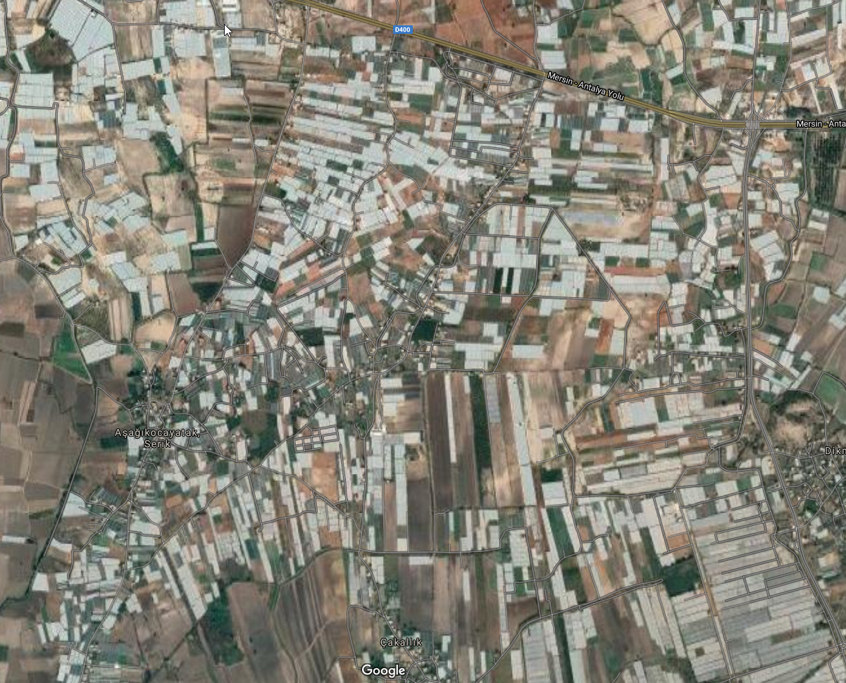 Турецкие помидоры выращиваются, видимо, по большей части на открытом грунте.Из космоса видно, что в Турции достаточно теплиц. На картинке теплицы в районе Анталии.