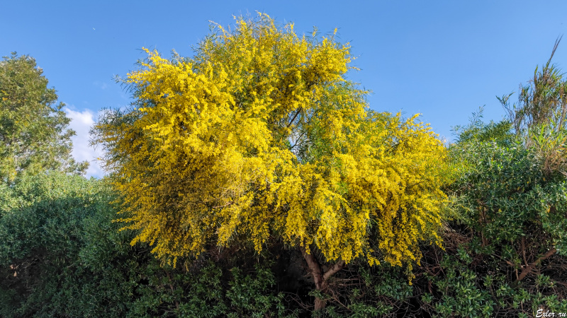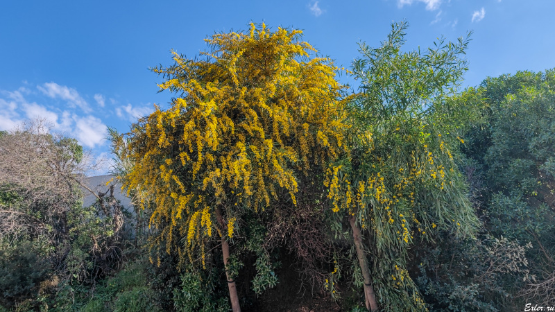 В Израиле около 300 видов акаций, совершенно потрясающих по форме и цвету. И даже есть известная всем, белая - зацвела в Иерусалиме на этой неделе.