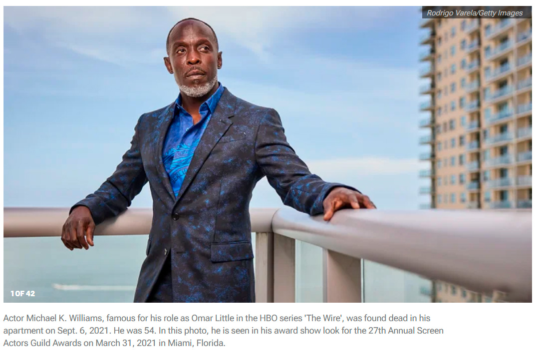 Еще одна смерть хорошего актера - "‘The Wire’ actor Michael K. Williams found dead in NYC apartment".