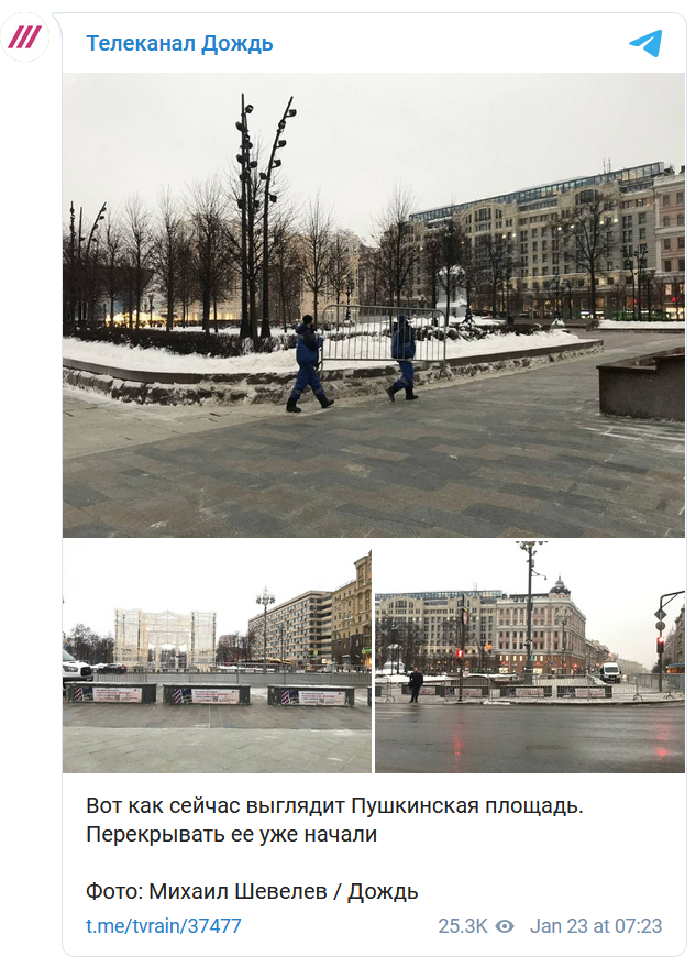Акции уже пошли по всей стране - вот здесь в "Медузе" в реальном времени ведется подробная хроника. Естественно, все подразделения, созданные Путиным для того, чтобы разгонять, избивать и арестовывать российский народ, задействованы по полной программе и, как обычно, действуют максимально подло и максимально жестоко. Вот здесь обновляется информация о задержаниях по всей стране.