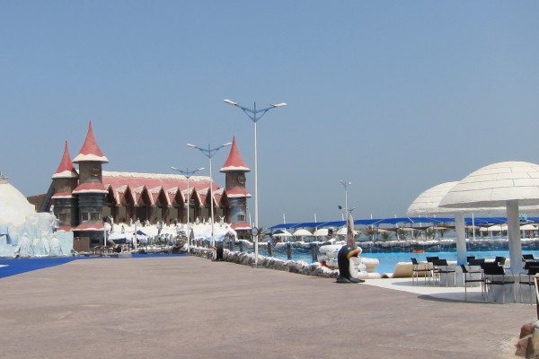 В эмирате Рас-эль-Хайм находится самый большой в ОАЭ аквапарк, который называется IceLand Water Park. Нам туда свозили поколбаситься пару часиков, и получилось интересно: мы были в самый несезон, в аквапарке народу практически не было вообще, так что оттянулись очень даже душевно. А вообще аквапарк в день принимает до 10000 человек, стоянка там рассчитана на 2500 машин.