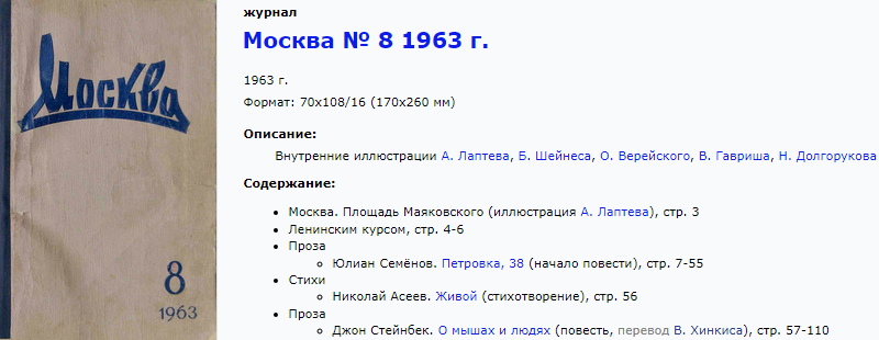 Номер удался. Семёнов и Стейнбек под одной обложкой: