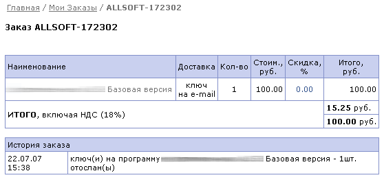 Причем, что интересно, в списке заказов фигурируют два заказа на одну и ту же программу, причем первый заказ вроде как оплачен и доставлен.