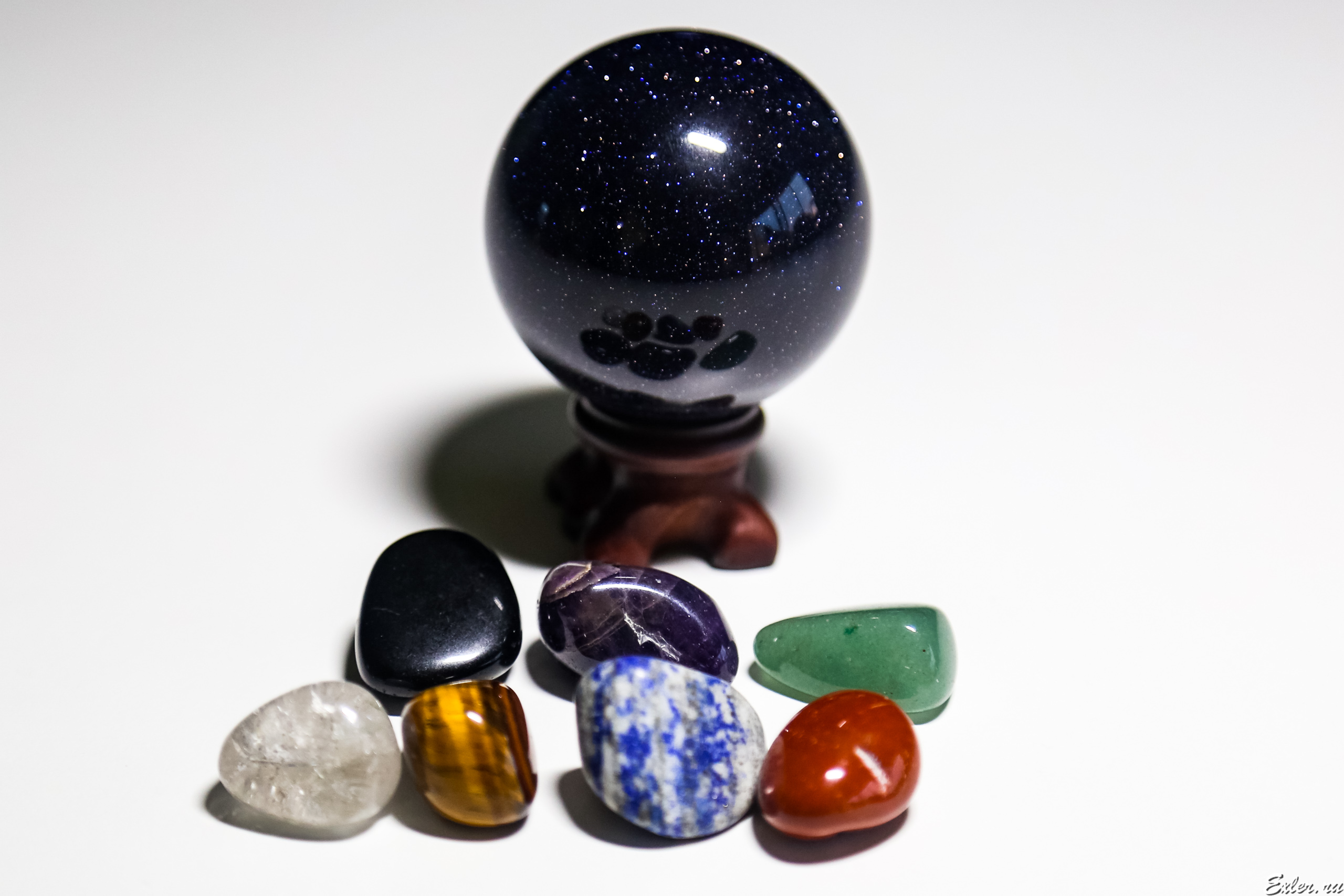 Приехал волшебный аметистовый шар и набор натуральных камней. Шар стоит на столе, успокаивает и умиротворяет. Волшебные функции также проявляет: при взгляде на шар немедленно перестает чесаться правая лопатка. А полированные камни (они приехали с мешочком) - в руках жамкать. Я когда смотрю кино, то мне надо что-нибудь жамкать в руках. Раньше для этого служили стальные магнитные шарики. Но они - одинаковые, скучные и неинтересные. А с этими полированными натуральными камнями - значительно интереснее. Качество полировки - очень хорошее, вот прям рекомендую. Аметистовые шары я еще парочку закажу - других цветов. А то этому одному скучно.