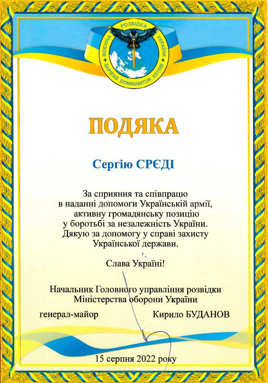 из недавних 'покурили' в штабе вагнера, который в Попасной (был), украинские СМИ показали грамоту корреспонденту сергею середе за содействие в уничтожении