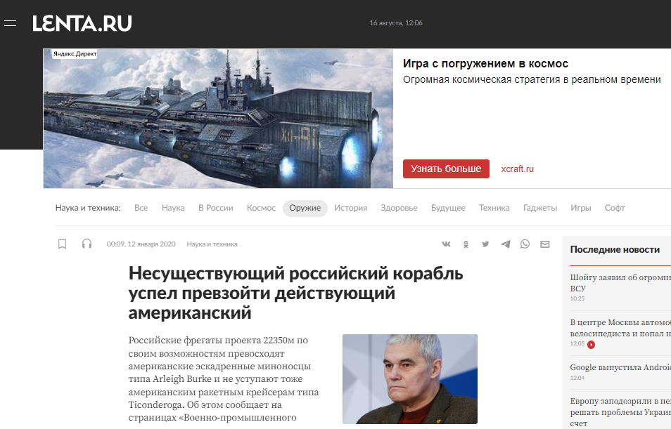 Над этими заявлениями даже Лента давно смеётся:"Несуществующий российский корабль успел превзойти действующий американский"lenta.ru