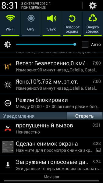 И в качестве бонуса — ползунок яркости при его перетаскивании не отключает автояркость, а корректирует её (примерно как в айфоне).