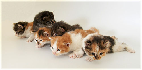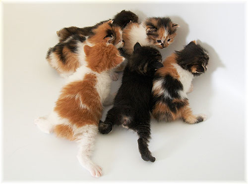 У Анфисы родились братики-сестрички. Ну, в смысле, у мамы Анфисы родились котейки - шесть штук. Вот такие вот ползуны на короткие дистанции (фото отсюда).