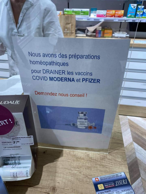 Не шутка. Гомеопатический препарат, выводящий из организма вакцины Файзер и Модерна. Продается в швейцарской (!) аптеке (via). В Швейцарии тоже без лоха и жизнь плоха!