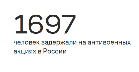 Upd: ОВД-Инфо пишут о 1697 жестко задержанных на антивоенных протестных акциях в России.