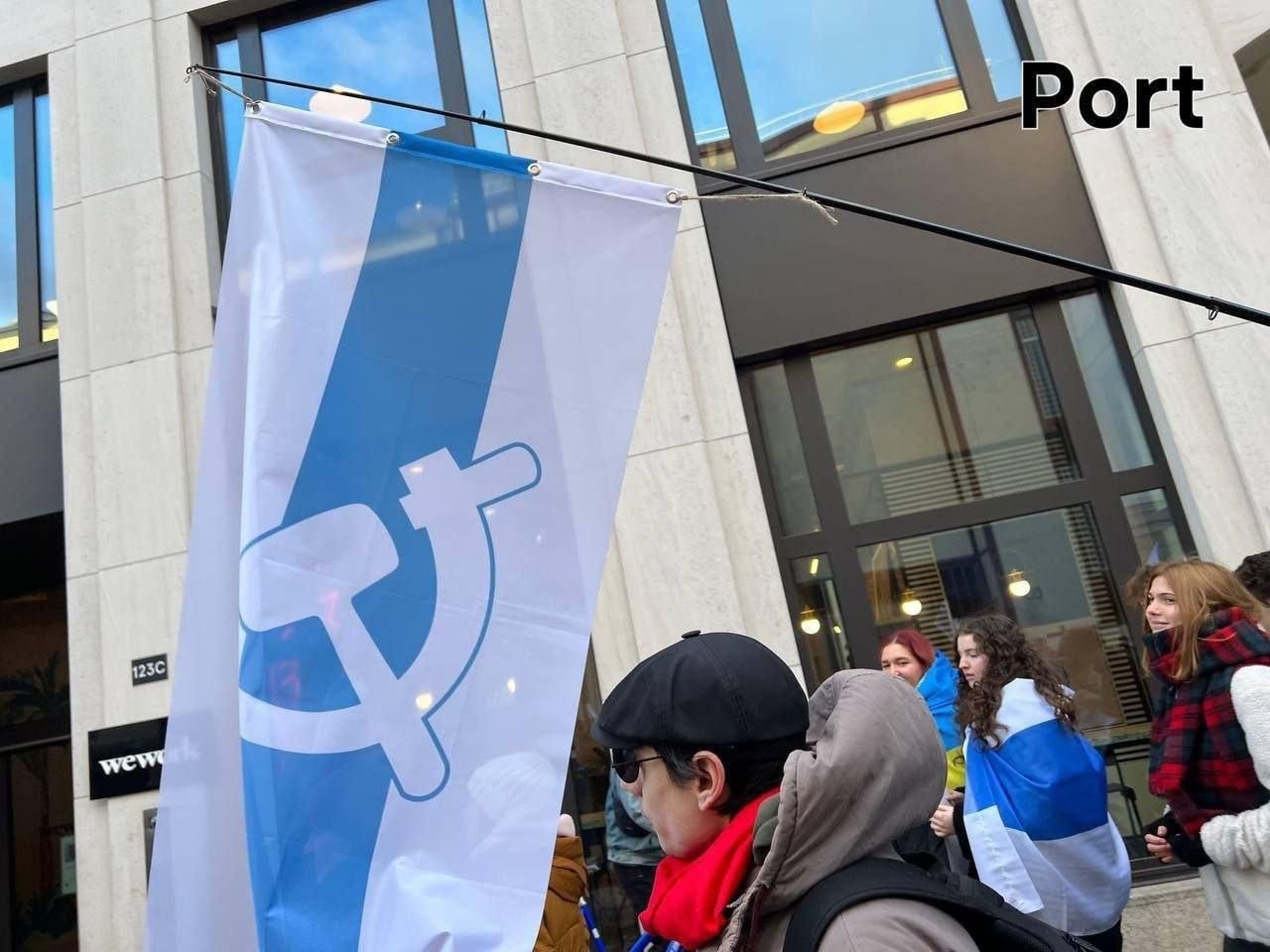 Вот да, антивоенный марш, кмк, должен только с одним из двух флагов: жёлто-синим или красно-чёрным... Остальные варианты как-то себя изжили...