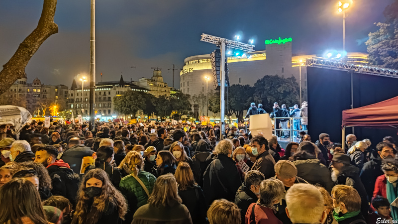 Вчера в Барселоне на площади Каталонии с 18:30 проходил антивоенный митинг, созванный каталонской организацией "Aturem la guerra" (Остановить войну). Я на этом митинге побывал.